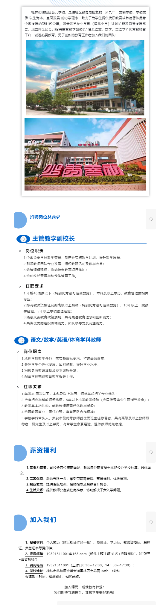桂林市臨桂區(qū)會元學(xué)校小學(xué)部(博元小學(xué))2025年教師招聘公告?