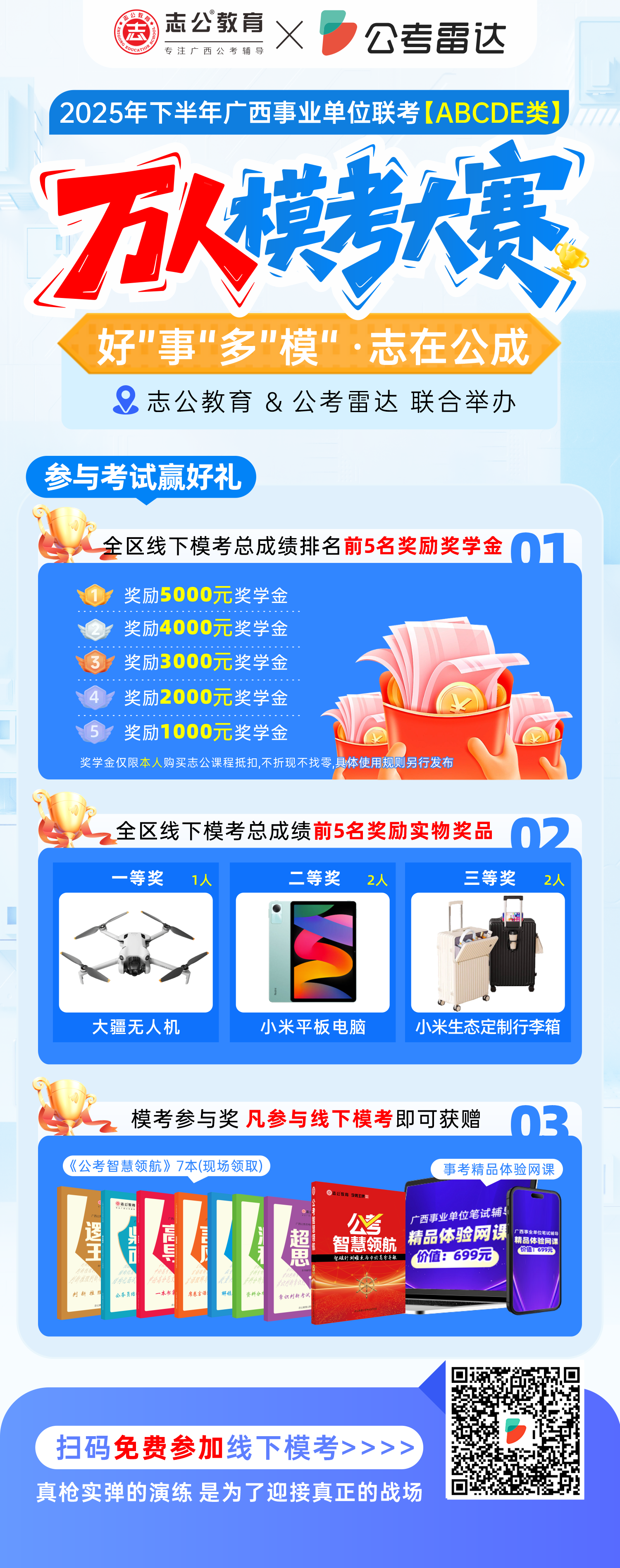 3????紖⑴c獎(jiǎng):凡報(bào)名線下模考,考完即可獲贈(zèng)《公考智慧領(lǐng)航》7 本(現(xiàn)場(chǎng)領(lǐng)?。┖褪驴季敷w驗(yàn)網(wǎng)課等學(xué)習(xí)大禮包。