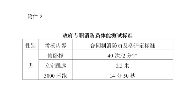 2、政府專(zhuān)職消防員體能測(cè)試標(biāo)準(zhǔn)