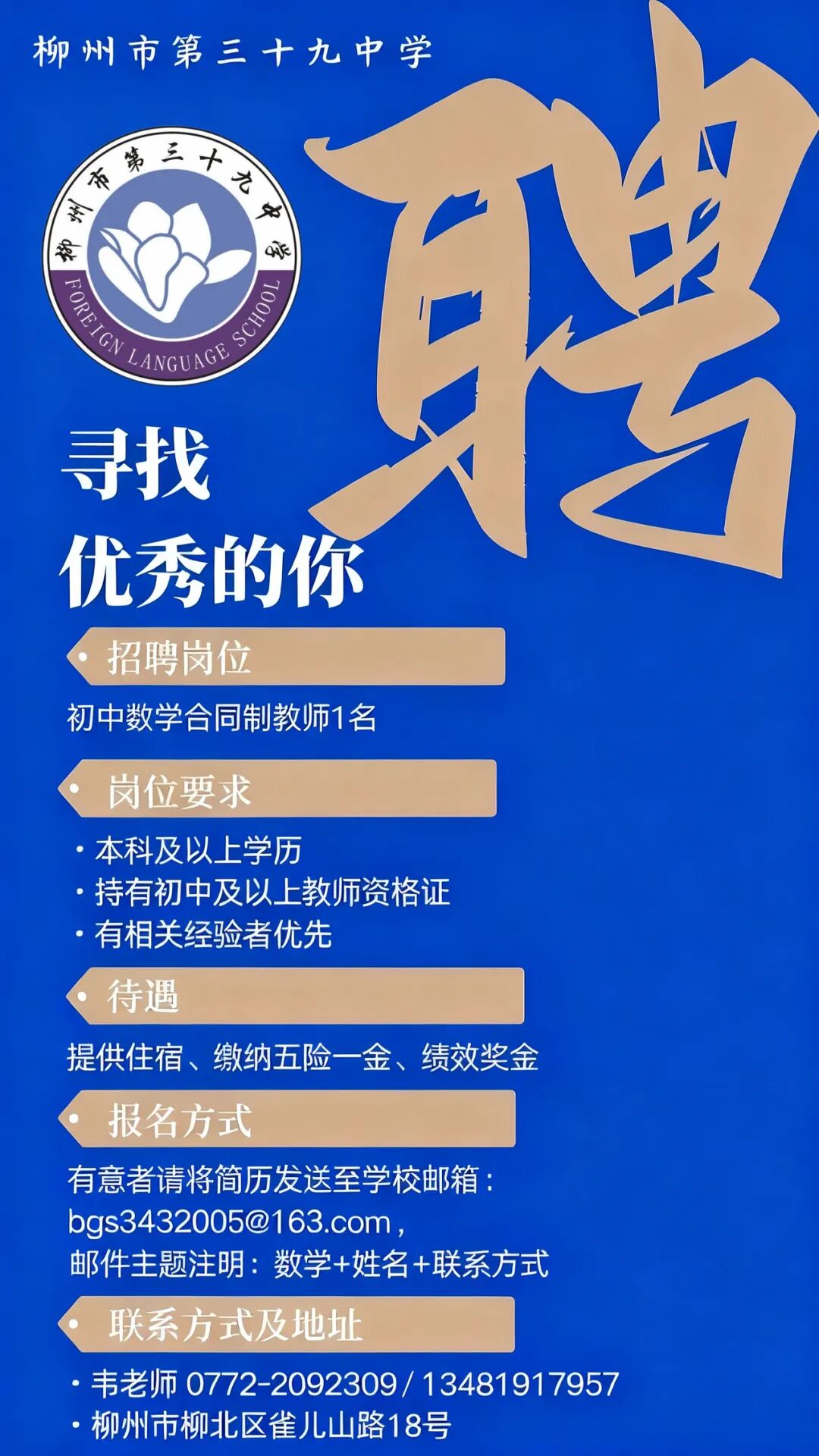 2025年柳州市第三十九中學(xué)招聘初中數(shù)學(xué)合同制教師1名