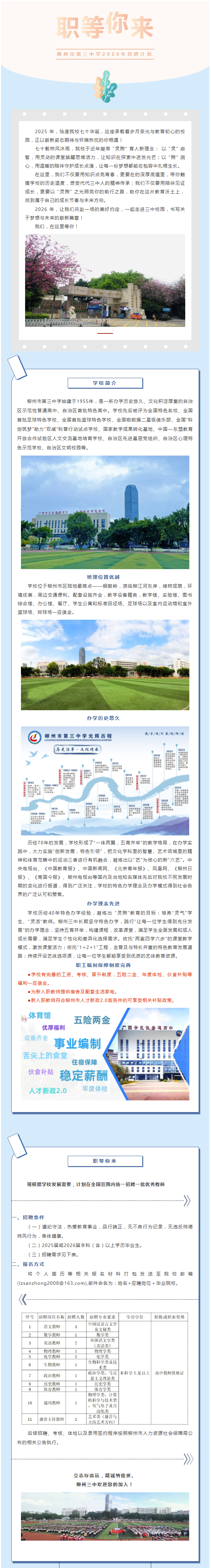 原文標(biāo)題:柳州市第三中學(xué)2026年招聘計劃
